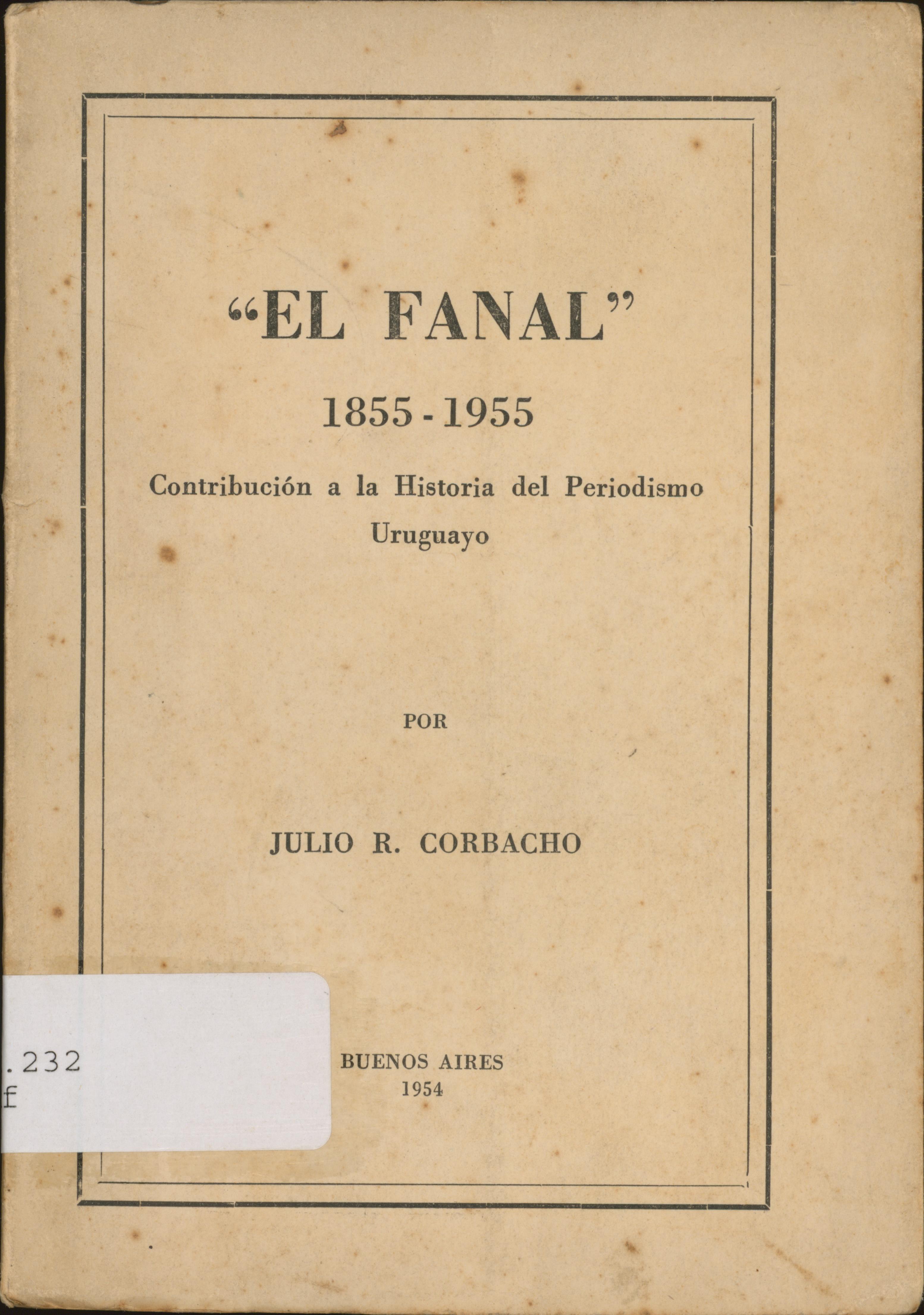 "El fanal" : 1855-1955 [texto impreso] / Julio R. Corbacho . - Buenos Aires : [s.n.], 1954 . - 118 p. Contribución a la historia del periodismo uruguayo. El ejemplar PDV02332 está dedicado por Julio R. Corbacho a Juan E. Pivel Devoto, en la portada, Ramos Mejía, 27/06/1954 Idioma : Español (spa)