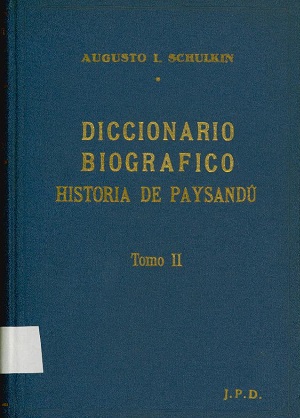 Historia de Paysandú : diccionario biográfico [texto impreso] / Augusto Isidoro Schulkin (1918-1998) . - Buenos Aires : Von Roosen, 1958 . - v.2, 488 p. Idioma : Español (spa)