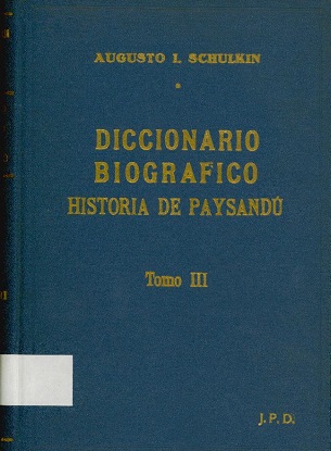 Historia de Paysandú : diccionario biográfico [texto impreso] / Augusto Isidoro Schulkin (1918-1998) . - Buenos Aires : Von Roosen, 1958 . - v.3, 514 p. Idioma : Español (spa)