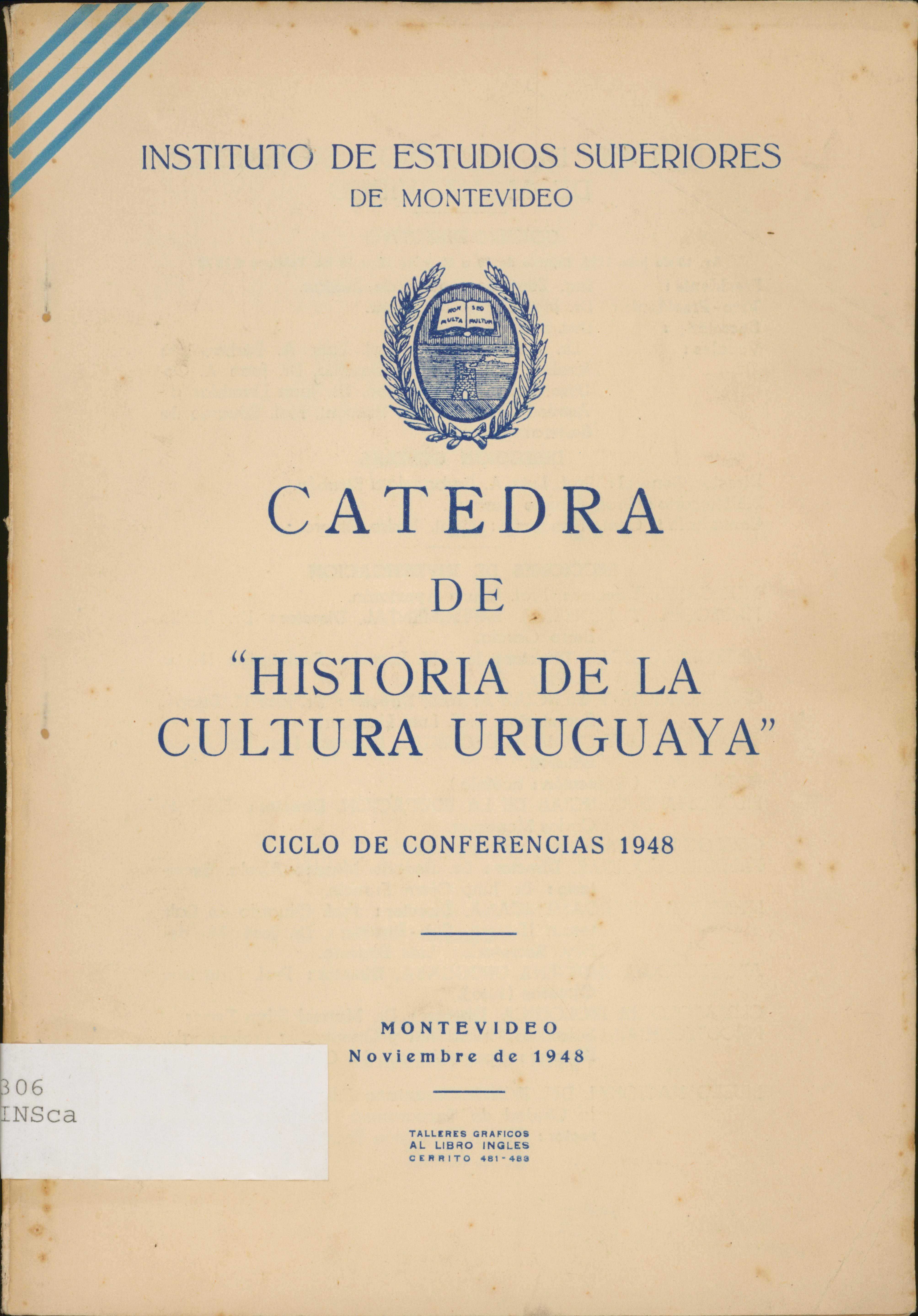 Cátedra de "historia de la cultura uruguaya" [texto impreso] / Instituto de Estudios Superiores de Montevideo . - Montevideo : Talleres Gráficos al Libro Inglés, 1948 . - 86 p. Ciclo de conferencias 1948 Idioma : Español (spa)