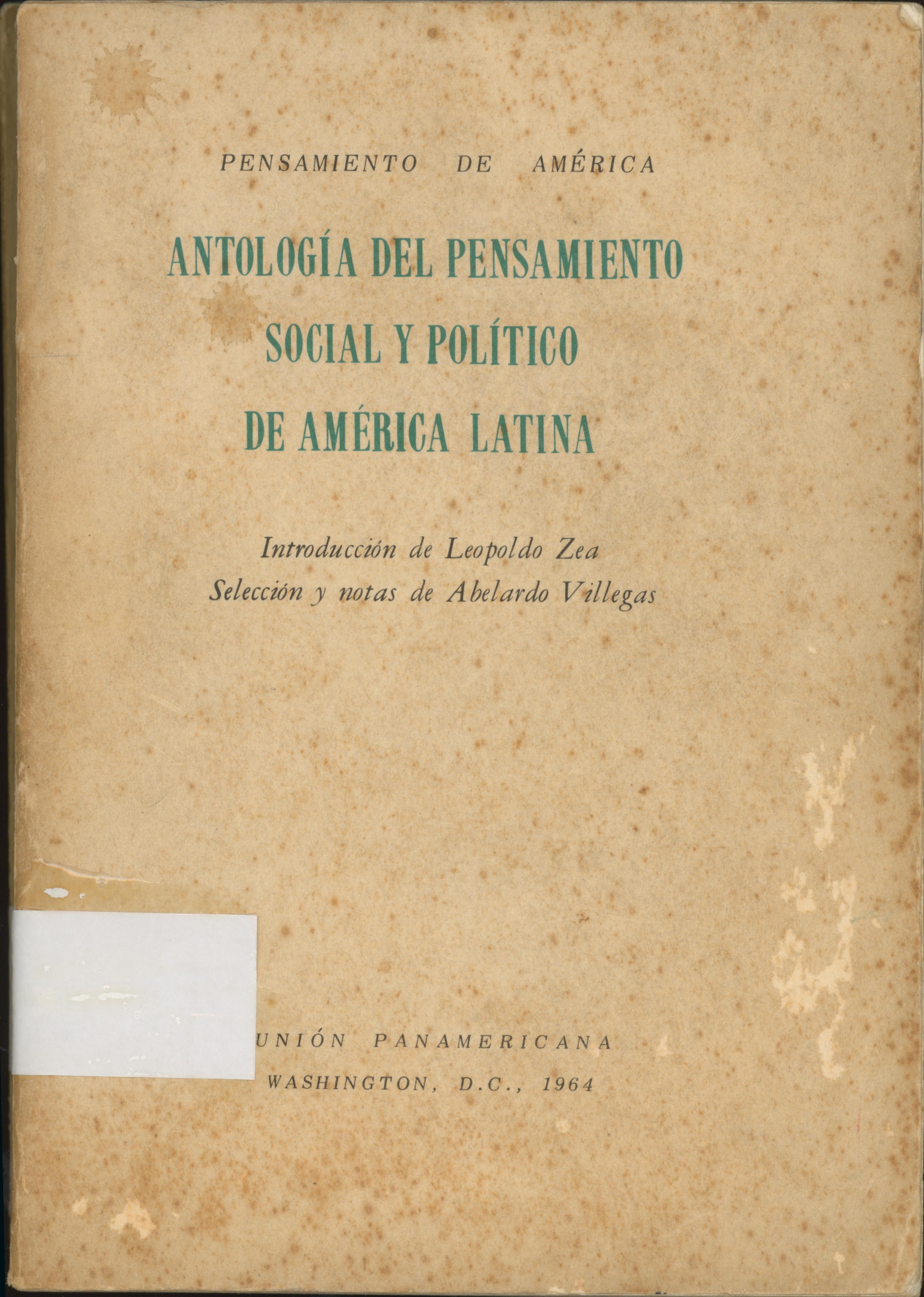 Antología del pensamiento social y político de América Latina [texto impreso] / Abelardo Villegas, Selección ; Leopoldo Zea . - Washington : Unión Panamericana, 1964 . - 600 p.. - ( Pensamiento de América) . Introducción de Leopoldo Zea Idioma : Español ( spa) | Tema: | ALBERDI, JUAN BAUTISTA AMERICA LATINA BELLO, ANDRES BOLÍVAR, SIMÓN GONZÁLEZ PRADA, MANUEL HIDALGO Y COSTILLA, MIGUEL LIBERALISMO MARTÍ, JOSÉ MIER, SERVANDO TERESA DE MIRANDA RODRÍGUEZ, SEBASTIÁN FRANCISCO DE MORA, JOSE MARIA LUIS MORELOS Y PAVÓN, JOSÉ MARÍA PENSAMIENTO POLITICO POSITIVISMO RODÓ, JOSÉ ENRIQUE RODRÍGUEZ, SIMÓN, 1769-1854 SIGLO XIX SIGLO XVIII SIGLO XX SOCIEDAD VALLE, JOSÉ CECILIO DEL