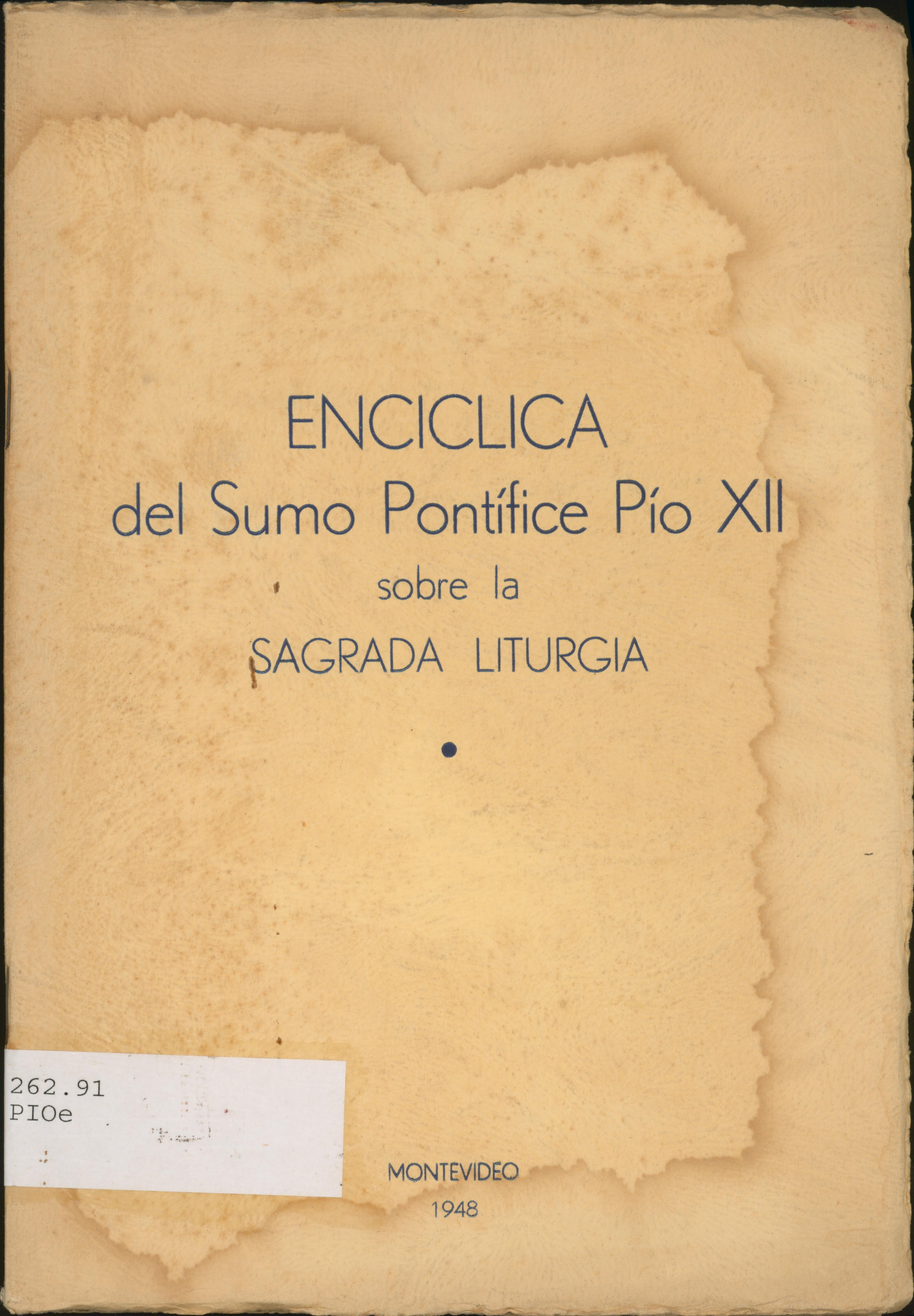 Encíclica del Sumo Pontífice Pío XII sobre la sagrada liturgia [texto impreso] / Pío XII, Papa . - Montevideo : [s.n.], 1948 . - 53 p. Idioma : Español (spa)