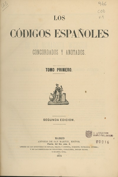 Los códigos españoles concordados y anotados [texto impreso] . - 2a.ed . - Madrid : Antonio de San Martin, 1872 . - v.1, lxxxiii, 485 p. - (Los códigos españoles concordados y anotados; 1) . Idioma : Español (spa)