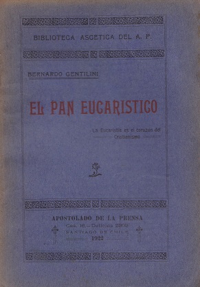 El pan eucarístico [texto impreso] / Bernardo Gentilini (1875-1936) . - Santiago de Chile : Apostolado de la Prensa, 1922 . - 99 p. ; 19 x 13 cm. - (Biblioteca de Ascética) . Idioma : Español (spa)