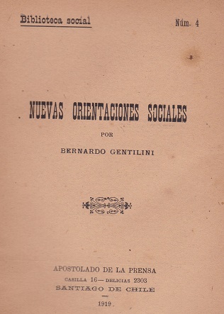 Biblioteca social [texto impreso] / Bernardo Gentilini (1875-1936) . - Santiago de Chile : Apostolado de la Prensa, 1919 . - v. ; 19 x 13 cm. Idioma : Español (spa)