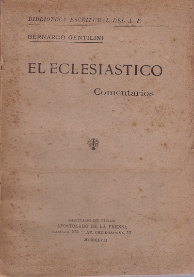 El eclesiastico : coementarios [texto impreso] / Bernardo Gentilini (1875-1936) . - Santiago de Chile : Apostolado de la Prensa, 1927 . - 130 p. ; 19 x 14 cm. Precede al título Biblioteca Escritural del A.P. Idioma : Español (spa)