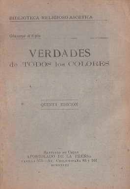 Verdades de todos los colores [texto impreso] / Glaneur D'Epis . - Santiago de Chile : Apostolado de la Prensa, 1928 . - 112 p. ; 19 x 14 cm. - (Biblioteca Religioso-Ascética) . Idioma : Español (spa)