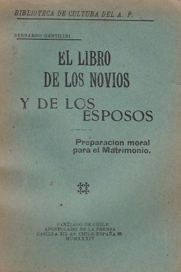 El libro de los novios y de los esposos : preparación moral para el matrimonio [texto impreso] / Bernardo Gentilini (1875-1936) . - Santiago de Chile : Apostolado de la Prensa, 1934 . - 109 p. ; 18 x 13 cm. Precede al título: Biblioteca de Cultura del A.P. Idioma : Español (spa)