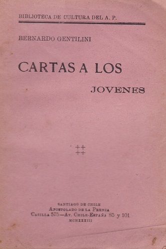 Carta a los jovenes [texto impreso] / Bernardo Gentilini (1875-1936) . - Santiago de Chile : Apostolado de la Prensa, 1933 . - 117 p. ; 18 x 13 cm. Precede al título: Biblioteca de Cultura del A.P. Idioma : Español (spa)
