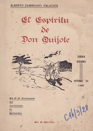 El espíritu de Don Quijote [texto impreso] / Alberto Zambrano Palacios . - Cuenca (Ecuador) : El Mercurio, 1947 . - 1 v. (sin pag.) : il. (dibujo) ; 23 x 17 cm. Dedicado y autografiado por Félix Chiappini a Arturo E. Xalambrí, en la contratapa, 19/07/1949 Idioma : Español (spa)