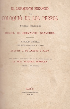 El casamiento engañoso y el coloqui de los perros : novelas ejemplares [texto impreso] / Miguel de Cervantes Saavedra (1547-1616) ; Agustín G. de Amezúa y Mayo (1881-1956), Editor . - Madrid : Bailly Bailliére, 1912 . - 744 p. ; 27 x 19 cm. Oeuvre : [Novelas Ejemplares] Edición crítica con introducción y notas por Agustín G. de Amezúa y Mayo. Encuadernación media holandesa, con nervios dorados en el lomo. Idioma : Español (spa)
