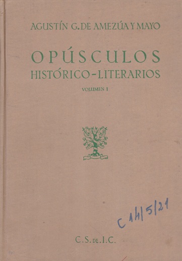 Opúsculos histórico-literarios [texto impreso] / Agustín G. de Amezúa y Mayo (1881-1956) . - Madrid : Consejo Superior de Investigaciones Científicas, Instituto "Miguel de Cervantes", 1951, 1953 . - 3 v. ; 27 x 18 cm. Encuadernados en tela Idioma : Español ( spa) | Tema: | ARCHIVOS ARTE BIBLIOFILIA CERVANTES SAAVEDRA, MIGUEL DE CRITICA LITERARIA ESCRITOR ESPAÑA HISTORIA LITERATURA ESPAÑOLA MENÉNDEZ Y PELAYO, MARCELINO NOVELAS QUEVEDO, FRANCISCO DE, 1580-1645 RAMÓN Y CAJAL, SANTIAGO RODRÍGUEZ MARÍN, FRANCISCO SÁTIRA SIGLO XVI SIGLO XVII SIGLO XVIII TIPOGRAFÍA TORQUEMADA, ANTONIO DE VÁZQUEZ DE MELLA FANJUL, JUAN, 1861-1928 VEGA, LOPE DE ZENÓN DE SOMODEVILLA Y BENGOECHEA, I MARQUES DE LA ENSENADA