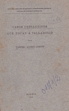 Casos cervantinos que tocan a Valladolid [texto impreso] / Narciso Alonso Cortés (1875-1972) . - Madrid : Imprenta de Fortanet, 1916 . - 171 p. ; 22 x 14 cm. Precede al título: Junta para Ampliación de Estudios e Investigaciones Científicas. Centro de Estudios Históricos. Encuadernado en tela Idioma : Español (spa)