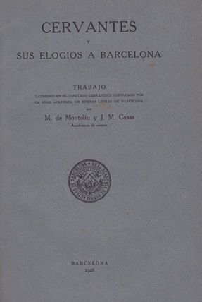 Cervantes y sus elogios a Barcelona [texto impreso] / Manuel de Montoliu (1877-1961) ; J.M. Casas . - Barcelona : [s.n.], 1928 . - 112 p. ; 25 x 17 cm. Encuadernación media holandesa, con nervios dorados en el lomo. Idioma : Español (spa)