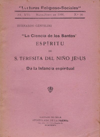 [número]  es un número de Lecturas Religioso-Sociales / Bernardo Gentilini (1911-1936) Año XVI N°90, 1936 - may.-jun. - La ciencia de los santos espíritu: de la infancia espiritual [texto impreso] / Santa Teresa de Jesús (1515-1582) . - 1936. Idioma : Español (spa)