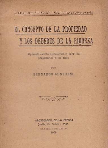 [número] es un número de Lecturas Sociales / Glaneur D'Epis (1921-1936) Año I, N°1, 1921 - jun. - El concepto de la propiedad y los deberes de la riqueza [texto impreso] / Bernardo Gentilini (1875-1936) . - 1921. Idioma : Español (spa)
