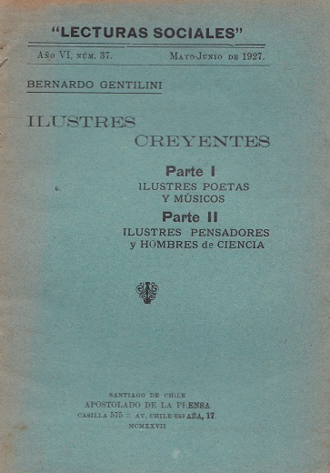 [número] es un número de Lecturas Sociales / Glaneur D'Epis (1921-1936) Año VI, N°37, 1927 - may.-jun. - Ilustres creyentes [texto impreso] / Bernardo Gentilini (1875-1936) . - 1927. Idioma : Español (spa)