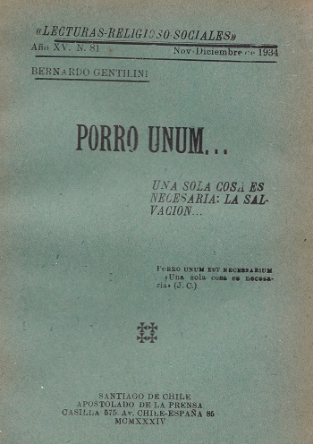 [número]  es un número de Lecturas Religioso-Sociales / Bernardo Gentilini (1911-1936) Año XV, N°81, 1934 - nov.-dic. - Porro unum... : una sola cosa es necesaria: la salvación... [texto impreso] / Bernardo Gentilini (1875-1936) . - 1934. Idioma : Español (spa)