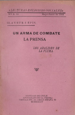 [número]  es un número de Lecturas Religioso-Sociales / Bernardo Gentilini (1911-1936) Año XV, N°78, 1934 - may.-jun. - Un arma de combate: la prensa. Los adalides de la pluma [texto impreso] / Glaneur D'Epis . - 1934. Idioma : Español (spa)