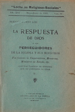 [número]  es un número de Lecturas Religioso-Sociales / Bernardo Gentilini (1911-1936) Año XVI, N°84, 1935 - may.-jun. - La respuesta de Dios a los perseguidores de la Iglesia y sus ministros : una sola cosa es necesaria: la salvación... [texto impreso] / Bernardo Gentilini (1875-1936) . - 1935. Idioma : Español (spa)