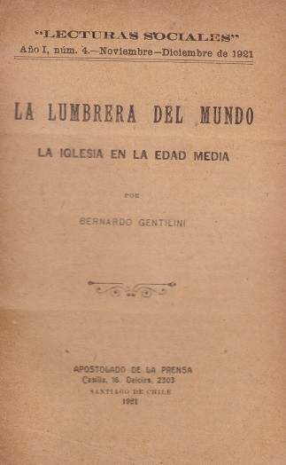 [número] es un número de Lecturas Sociales / Glaneur D'Epis (1921-1936) Año I, N°4, 1921 - nov.-dic. - La lumbrera del mundo. La Iglesia en la Edad Media [texto impreso] / Bernardo Gentilini (1875-1936) . - 1921. Idioma : Español (spa)