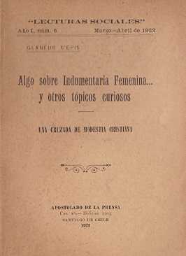 [número] es un número de Lecturas Sociales / Glaneur D'Epis (1921-1936) Año I, N°6, 1922 - mar.-abr. - Algo sobre indumentaria femenina... y otros tópicos curiosos. Una cruzada de modestia cristiana [texto impreso] / Glaneur D'Epis . - 1922. Idioma : Español (spa)