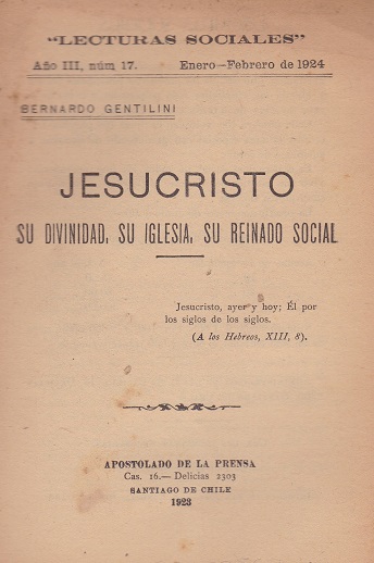 [número] es un número de Lecturas Sociales / Glaneur D'Epis (1921-1936) Año III, N°17, 1924 - ene.-feb. - Jesucristo: su divinidad, su Igesia, su reinado social [texto impreso] / Bernardo Gentilini (1875-1936) . - 1924. Idioma : Español (spa)