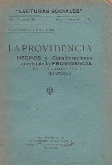 [número] es un número de Lecturas Sociales / Glaneur D'Epis (1921-1936) Año VI, N°36, 1927 - mar.-abr. - La providencia: hechos y consideraciones acerca de la providencia en el cuidado de sus criaturas [texto impreso] / Bernardo Gentilini (1875-1936) . - 1927. Idioma : Español (spa)