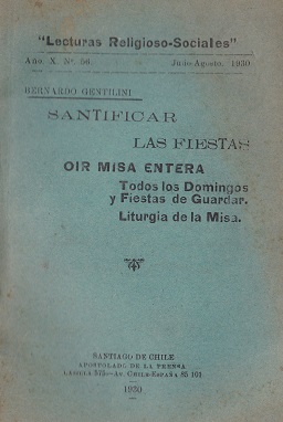 [número] es un número de Lecturas Sociales / Glaneur D'Epis (1921-1936) Año X, N°56, 1930 - jul.-ago. - Santificar las fiestas. Oir misa entera. Todo los domingos y fiestas de guardar. Liturgia de la misa [texto impreso] / Bernardo Gentilini (1875-1936) . - 1930. Idioma : Español (spa)