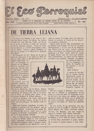 [número] es un número de El Eco Parroquial / Parroquia Nuestra Señora de las Mercedes (1944-) Año XVI, n°822-870, 1948 - ene.- dic. [texto impreso] . - 1948 . - 1 v. (p. varía) : il. lám., (fotografía), (dibujo) ; 29 x 21 cm. Todos los fascículos comprendidos entre el 4 de enero al 26 de diciembre de 1948 encuadernados juntos. Encuadernación holandesa. Idioma : Español (spa)