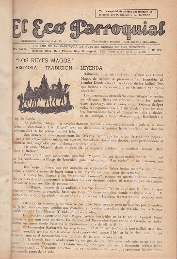 [número] es un número de El Eco Parroquial / Parroquia Nuestra Señora de las Mercedes (1944-) Año XXVII, n°1196-1243, 1958 - ene.- dic. [texto impreso] . - 1958 . - 1 v. (p. varía) : il. lám., (fotografía), (dibujo) ; 29 x 21 cm. Todos los fascículos comprendidos entre el 5 de enero al 21 de diciembre de 1958 encuadernados juntos. Encuadernación holandesa. Idioma : Español (spa)