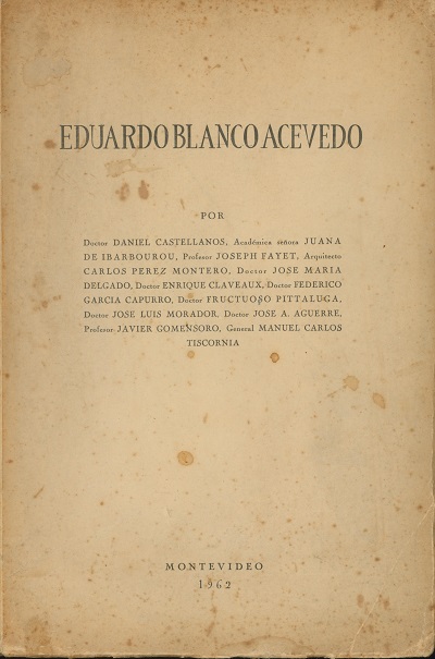 Eduardo Blanco Acevedo [texto impreso] / Daniel Castellanos (1882-1968), Prologuista . - Montevideo : [s.n.], 1962 . - 189 p. Dedicado por Federico García Capurro a Juan E. Pivel Devoto, en la portada, 10 de febrero de 1963 Idioma : Español ( spa) | Tema: | BIOGRAFIA BLANCO ACEVEDO, EDUARDO POLÍTICA SIGLO XX URUGUAY