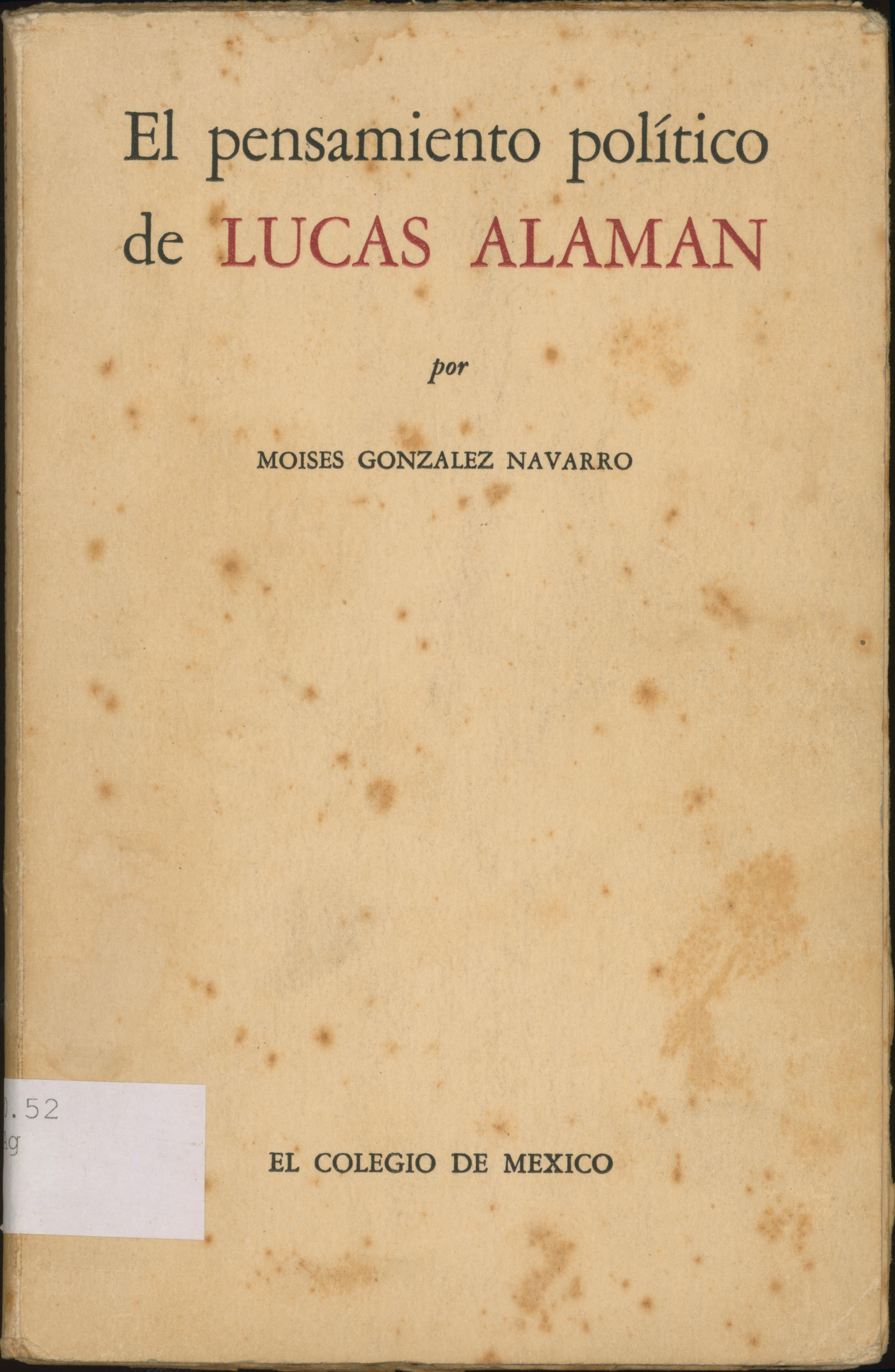 El pensamiento político de Lucas Alamán [texto impreso] / Moisés González Navarro . - México : El Colegio de México, 1952 . - 178 p. Idioma : Español (spa)