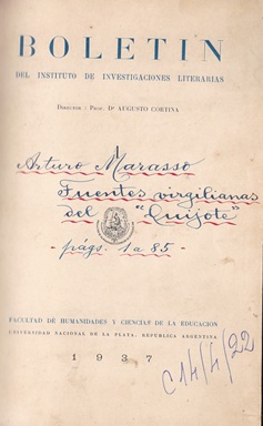 [artículo] Fuentes virgilianas del Quijote [texto impreso] / Arturo Marasso (1890-1970) . - 1937 . - pp. 1-85.