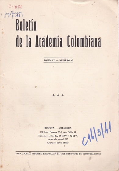 in Boletín de la Academia Colombiana > Tomo XII, N°43, 1962 (abr.-jun.) . - pp 73-78