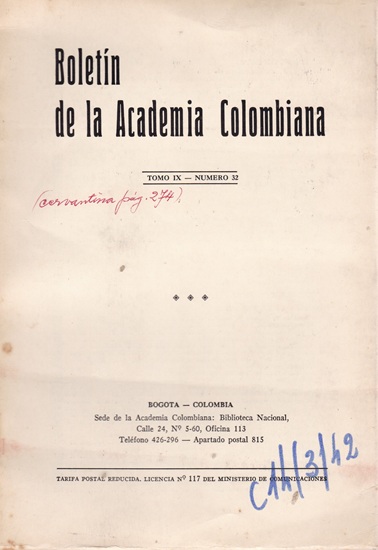 in Boletín de la Academia Colombiana > Tomo IX, N°32, 1959 (jul.-set.) . - pp. 274-286